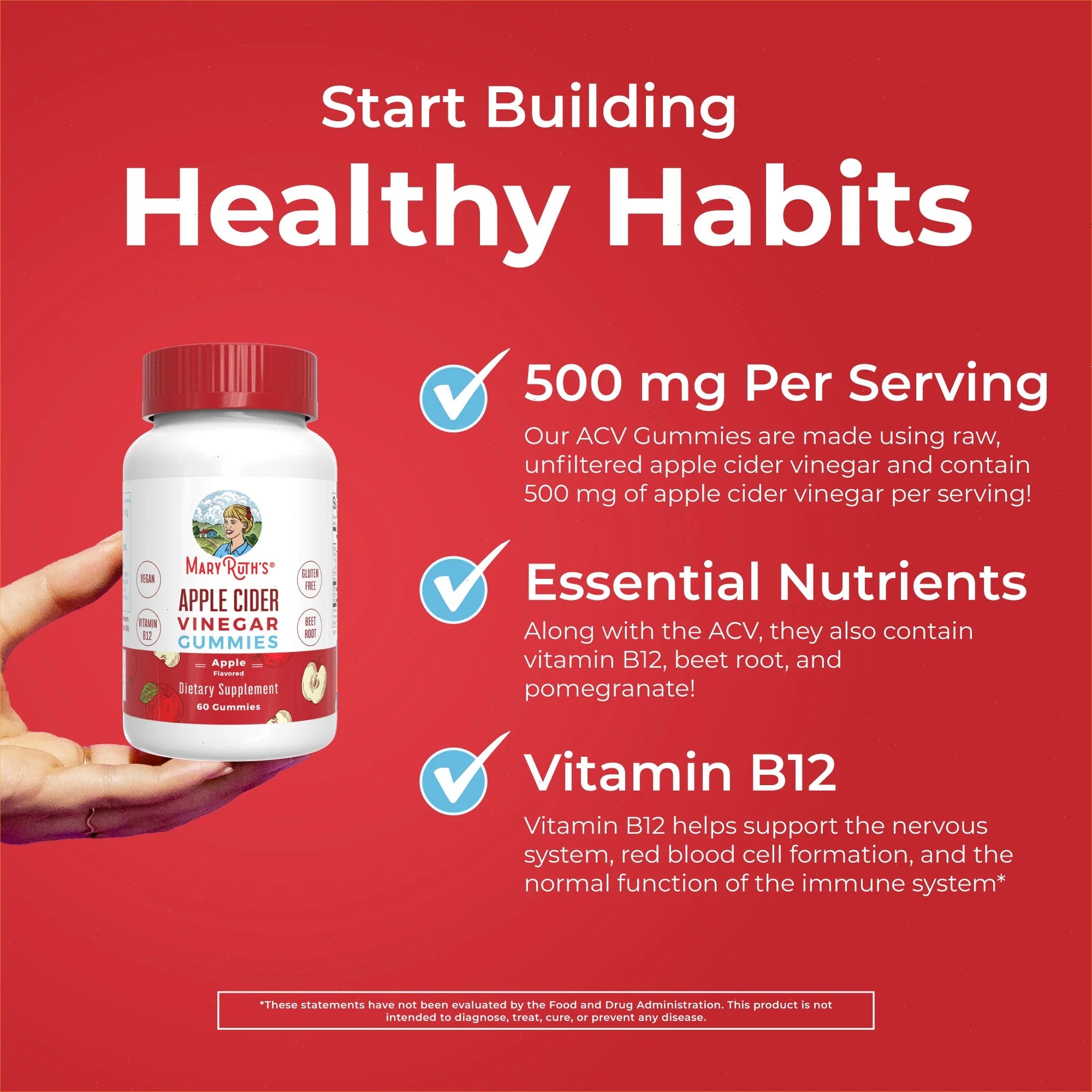 500 mg Per Serving: Our Apple Cider Vinegar Gummies are made using raw, unfiltered apple cider vinegar and contain 500 mg of apple cider vinegar per serving!