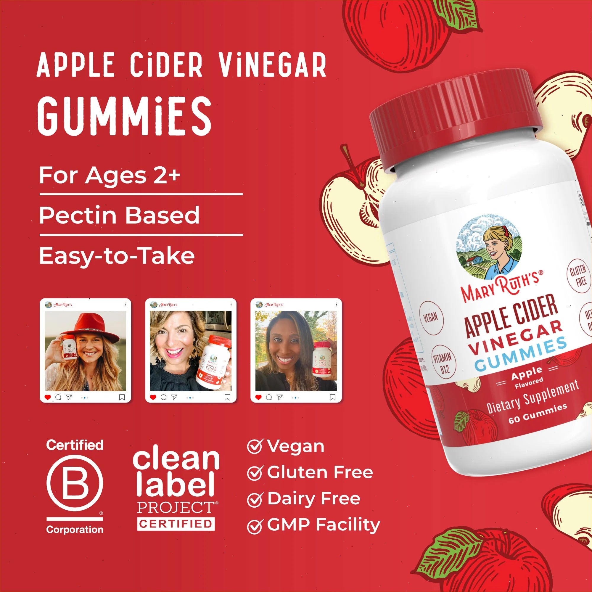 Formulated for the Whole Family: Ages 2 and up can enjoy apple cider vinegar without the taste with these delicious apple-flavored gummies as part of your wellness routine!