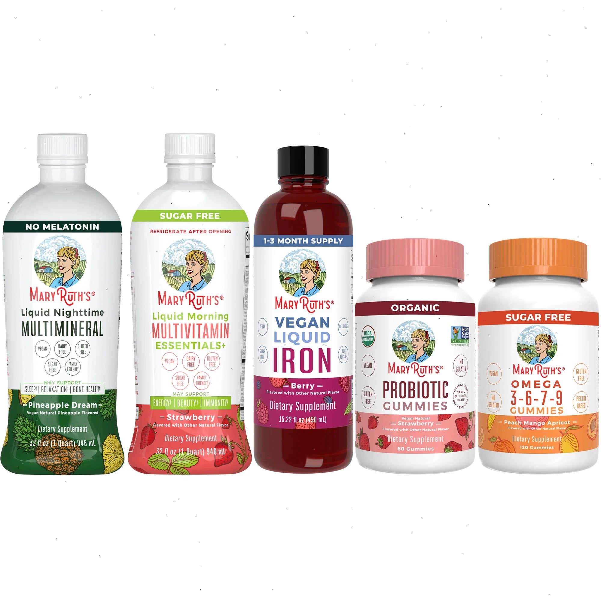 With this starter kit, make sure you’re giving your body the nutrients it needs to support energy metabolism, beauty, immunity, gut health, heart health, and more! Create a healthy AM and PM routine with our Liquid Morning Multivitamin and Liquid Nighttime Multimineral, and add in iron, omegas, and a probiotic when they fit into your day.